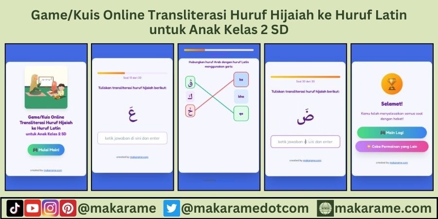 Continue Reading…Transliterasi menjadi langkah awal sebelum anak benar-benar mahir membaca huruf hijaiah secara langsung. Dengan transliterasi, anak-anak belajar untuk membedakan suara antar huruf hijaiah yang hampir mirip pengucapannya. Pelajari melalui game pembelajaran dari makarame agar anak makin tertarik untuk belajar. Download gamenya melalui link berikut ini: