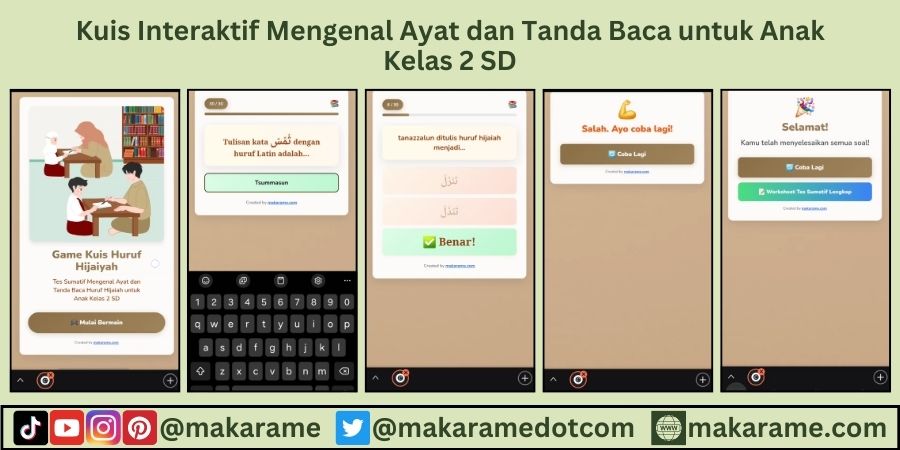 Continue Reading…Ayo Mainkan Kuis Interaktif Mengenal Ayat dan Tanda Baca! Yuk, belajar jadi lebih seru dengan Kuis Interaktif Mengenal Ayat dan Tanda Baca khusus untuk anak kelas 2 SD! Di sini, kamu bisa menguji pengetahuan tentang ayat dan berbagai tanda baca huruf hijaiah sambil bermain. Soal-soalnya menarik dan mudah dipahami, cocok untuk menambah wawasan sekaligus persiapan ujian. Jangan lewatkan kesempatan untuk belajar sambil bermain dan raih skor tertinggi! Ayo, mainkan kuisnya sekarang dan buktikan kemampuanmu!